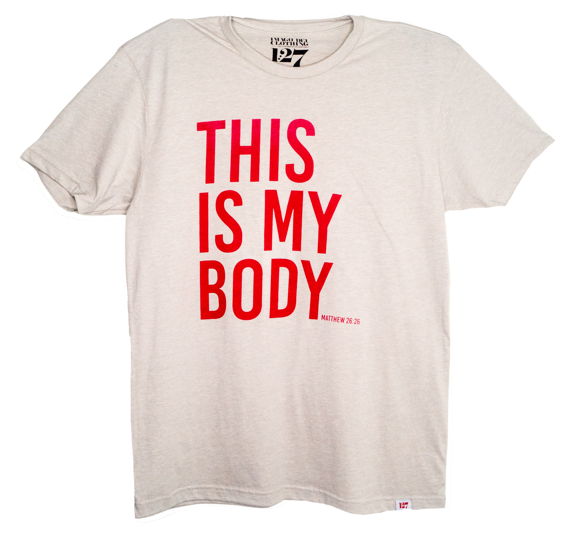 Wear this shirt as you remember what Jesus did for you on the Cross. Wear this shirt when you need to be reminded that your body is Made in the Image of God. Wear this shirt when you want to spark a conversation about Jesus where you live, work, and play.